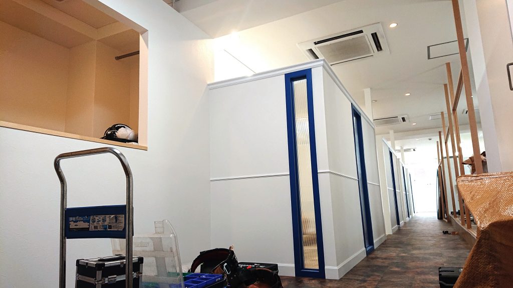 2019.7.4 工事後半に~ 内装工事後半に入りました。 これからどんな感じになるのか? 楽しみです。👍 個室は県内一の広さで抜群の使い良さとお客様とのちょうど良い距離感があります。 個室と言うより、これはお店ですね。 本当になんでも対応出来ると思います。